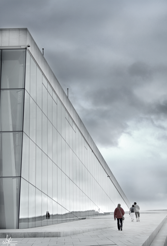 Her kommer to bilder til fra Den Norske Opera`s fantastiske fasade.. Må nok innrømme at jeg var litt av den typen som trakk på skuldrene av all marmorpraten da det ble bygget,- men det ble utrolig flott! Vel verdt et besøk :)